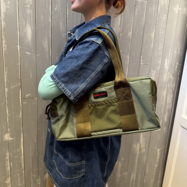 ショルダーバッグとしてもお使いいただけますが、フロントのテープ部分を手持ちするとトートバッグとしても使えちゃいます◎