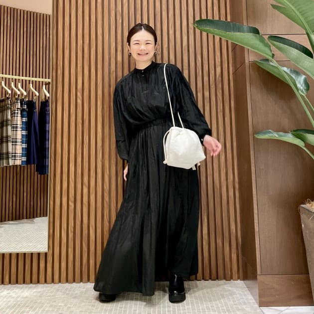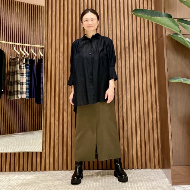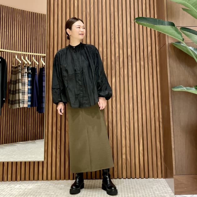 スカートにも好相性。今はスッキリシルエットのスカートなので出してきてますが、