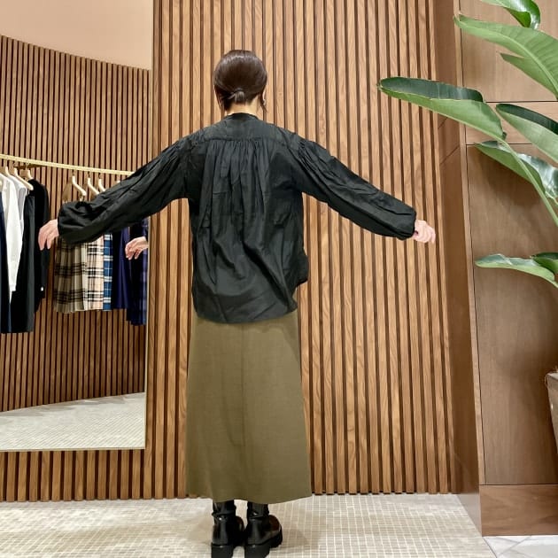 袖もボリューム袖で前出のシャツより更に空気を含む雰囲気です。