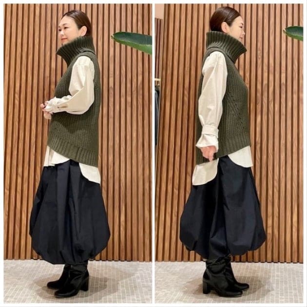 こちらのニット、前後差があって横から見たシルエットがたまりません。