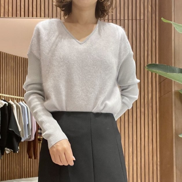 Demi-Luxe BEAMS / フロント フラッフィ Vネックニット
