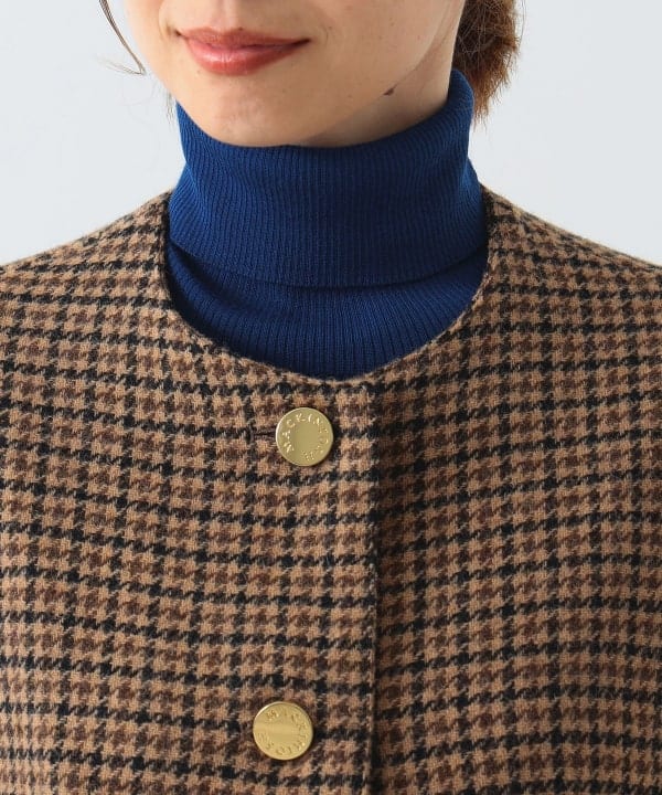 ノーカラーのショートコート。