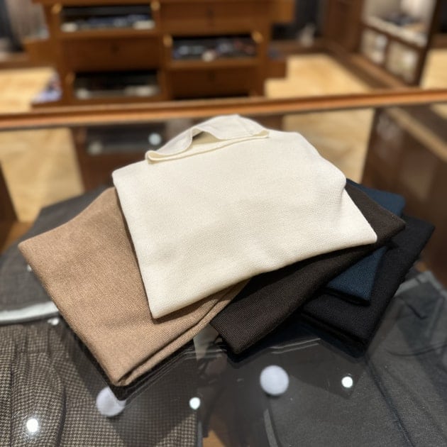 モダンを感じるカラーバリエーションはジャケットに合わせて着用したいところです。