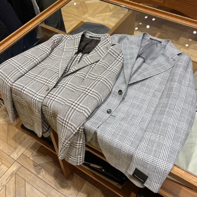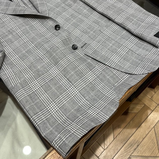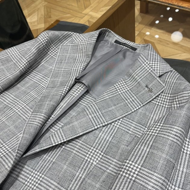 【別注】TAGLIATORE / COSTA AZZURRA リネンウール グレー グレンチェック柄 ジャケット