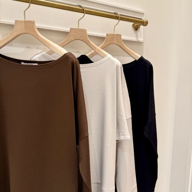 絶妙なカッティングのボートネックが、デコルテを綺麗に見せてくれます。