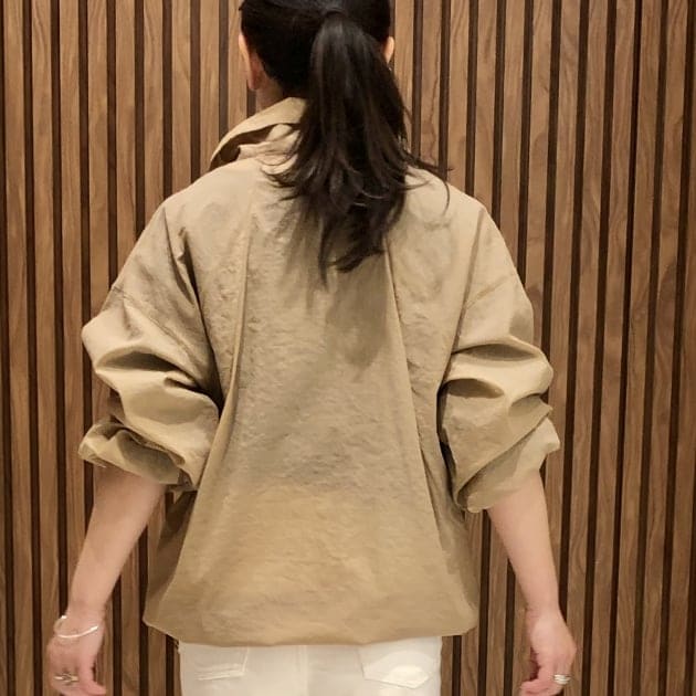 後ろ姿も身頃はスッキリ見え、袖のボリュームがよりポイントになりますね〇