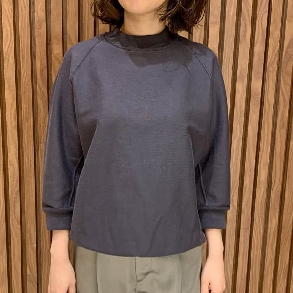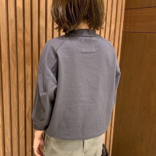 ラグランスリーブのスウェットのような形がスポーティながら、