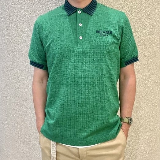 BEAMS GOLF PURPLE LABEL / 襟裏ロゴ シアサッカー ポロシャツ