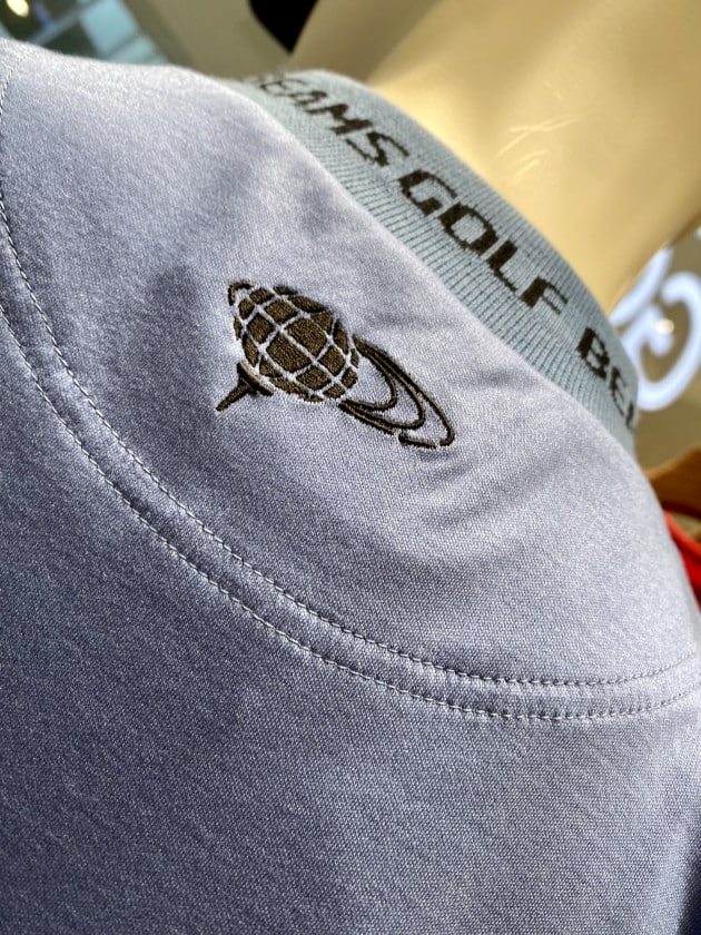 上に重ね着した時もロゴが見えるのがポイントです◎