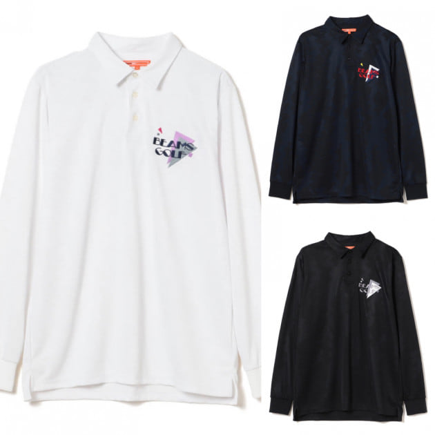1つめは、メンフィス柄をジャカードで表現したロングスリーブポロシャツです。