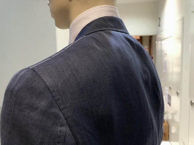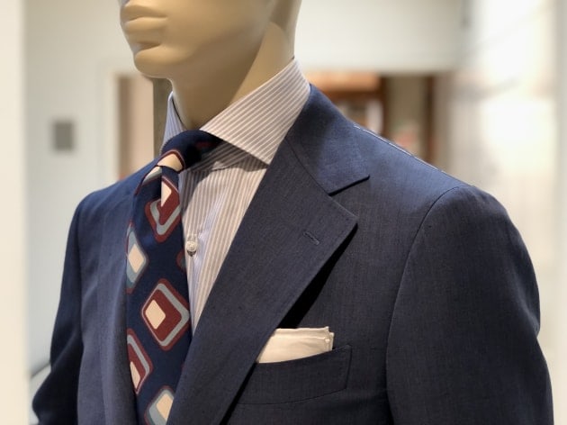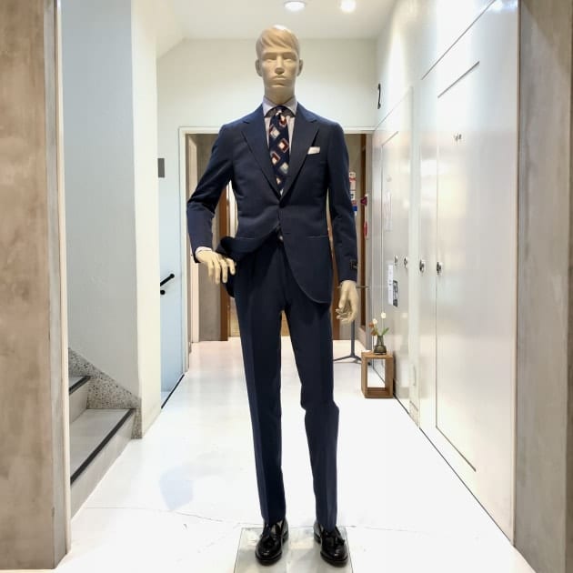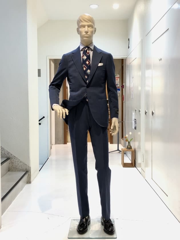 生地や色、各ディテールから受ける印象は、道楽とも呼べる嗜好品としてのスーツ。数多のスーツを着てきた御仁が拘って仕立てたオーダー品…。そんな印象です。