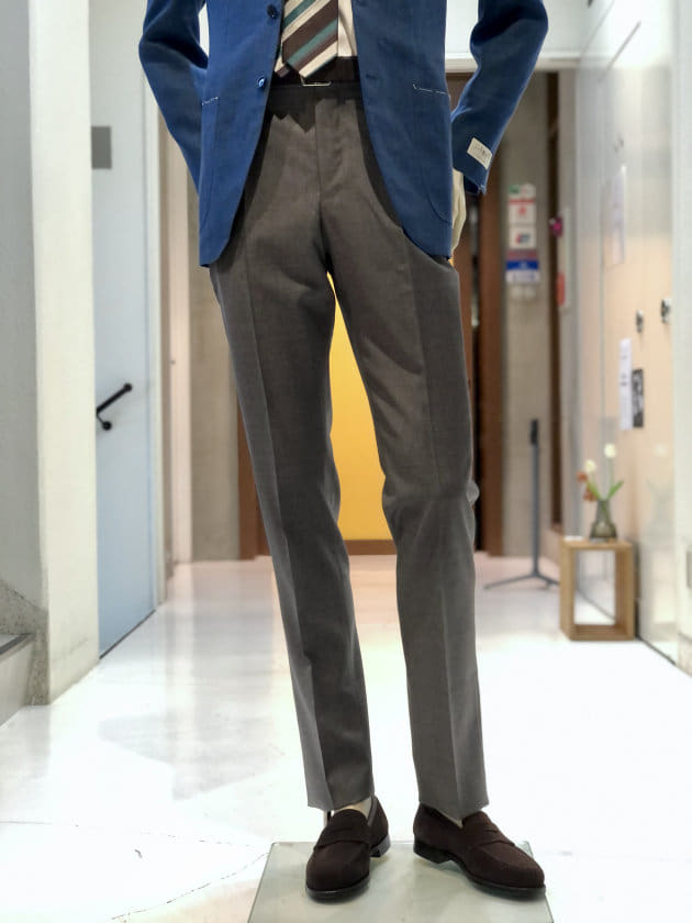 パンツはオーソドックスに、〈PT TORINO(ピーティー トリノ)〉のトロピカルウール1プリーツパンツです。