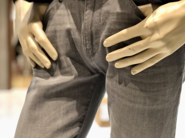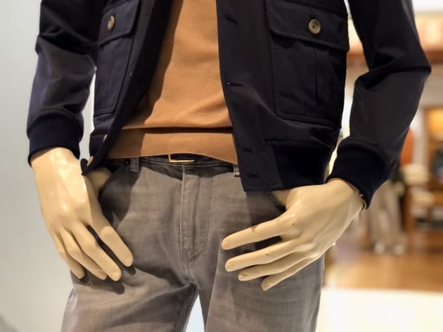 余談ですが、前々から5ポケットパンツ専用の指を突っ込むこのマネキンを使いたかった(しょうもない)夢が叶いました。いつも使っているマネキンより雰囲気が出て良かったと思います。カジュアルフロアで使用中のマネキンをわざわざ脱がせた甲斐がありました。