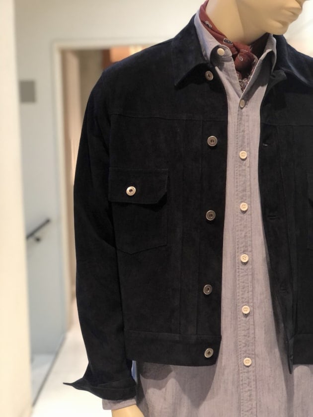 通称“2nd”タイプの名作デニムジャケットをベースに、ゼロから仕上げた完全別注のスエードブルゾンは、1950年代のワークウェアらしい野暮ったいシルエットを踏襲しつつ、やぎ革の柔らかいスエードが生み出す適度な重みにより、ストンと落ちるスッキリとしたシルエットが特徴です。