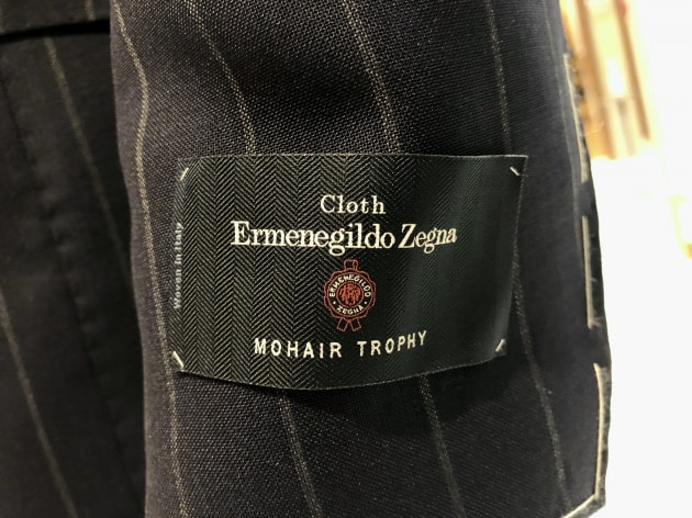 私を惑わす魅惑の生地は、Ermenegildo Zegna(エルメネジルド ゼニア)社のMOHAIR TROPHY(モヘヤトロフィー)コレクション。世界のモヘヤシェアを大きく占める南アフリカ産の、更に上質と認められたモヘヤのみを緯糸(よこいと)に、スーパーファインウールを経糸(たていと)に使用した各50%の贅沢な生地です。良質のモヘヤを安定して供給できる南アフリカ産の特徴は、極めて柔らかい事。ハリコシはあるのですが、50%のモヘヤ混と聞けば、かなりのガシガシ感をイメージするところ、滑らかな肌触りと鈍い光沢は高品質を物語っています。