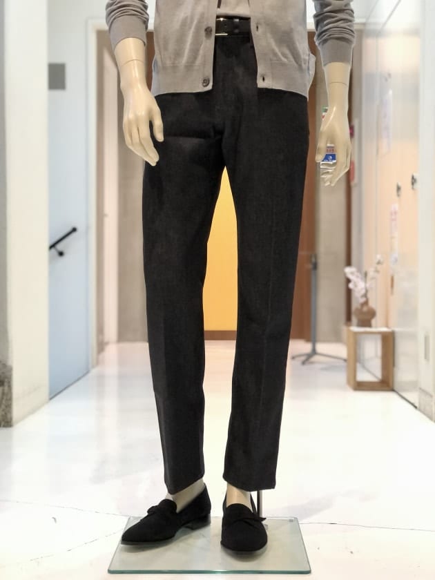 クリース入りで入荷しますが、その後のお取り扱いはお好みで自由にお選び下さい。ジャケパンとしても、Tシャツ1枚でも、インディゴにはない洗練された大人の雰囲気を味わえると思います。