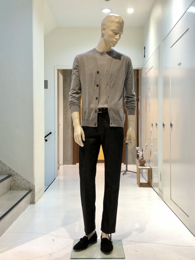 ゲージのお話にしましょう。〈JOHN SMEDLEY 〉と言えばハイゲージ(ファインゲージ)ですが、数値が高くなると編み目は細かくなります。その数値は、1インチ(2.54㎝)内の編み機の針の本数を指し、30ゲージは世界最高峰にして唯一無二の存在です。繊細故によく聞かれるお手入れにつきましても、〈JOHN SMEDLEY〉の公式サイトに掲載されていますので、是非ご覧下さいませ。わかりやすくて良心的です。