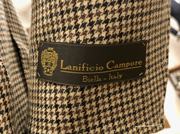 そんな素敵な生地は、イタリアはLanificio Campore(ラニフィーチョ カンポーレ)社のもの。前身となる工場まで遡ると創業1830年という、聖地ビエラでも2番目に古いとされる老舗ミルです。幅広い生地展開が魅力のCampore社ですが、一際目を引くのが意匠糸を使用したファンシーツイード。老舗ミルとは思えぬ卓越した色彩を生み出す美的感覚のCampore社からすれば、今回のハウンドトゥースなんて朝飯前の配色なのかもしれません。