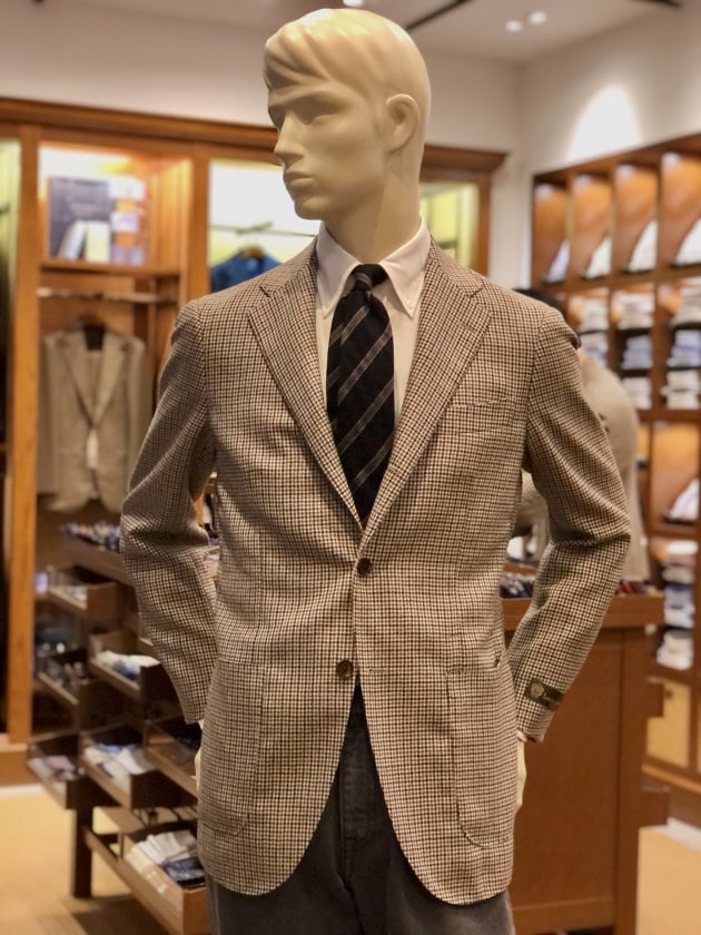 サラッとツツミが見切れていましたが、同じものを着ています。軽い仕立てとお求めやすさが人気のEASYシリーズから、なんとも渋いハウンドトゥースが登場です。