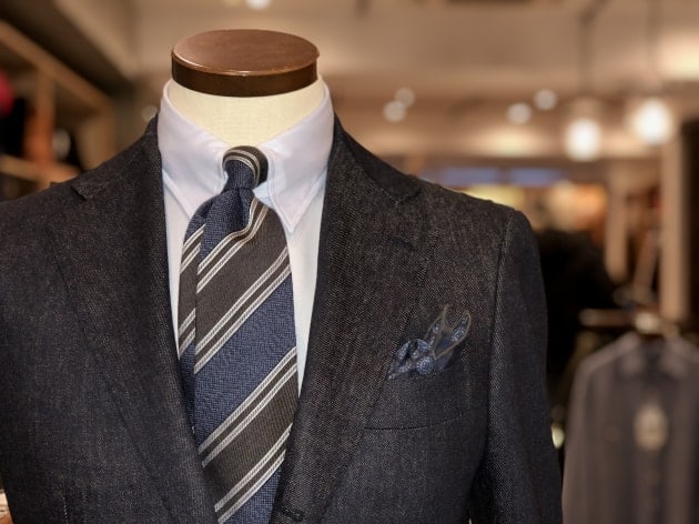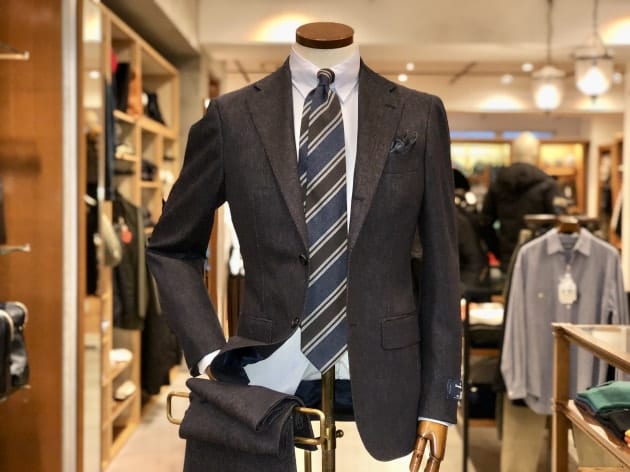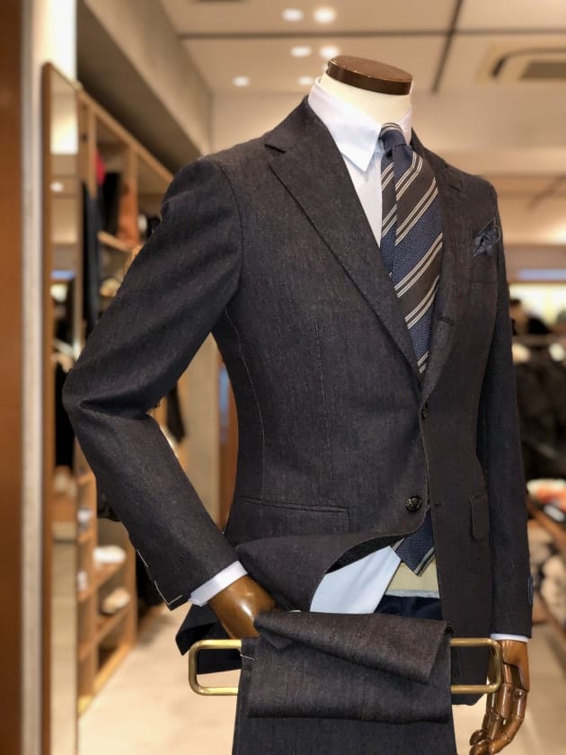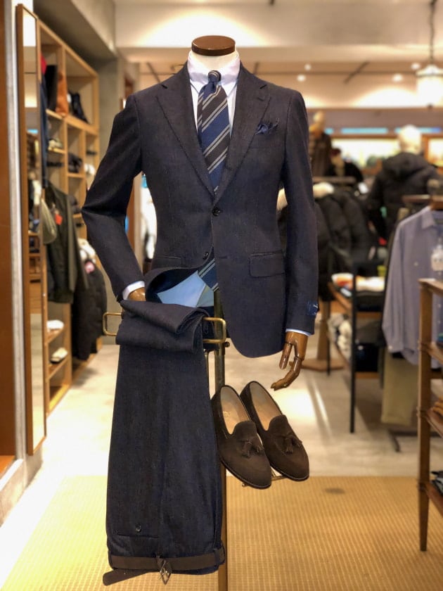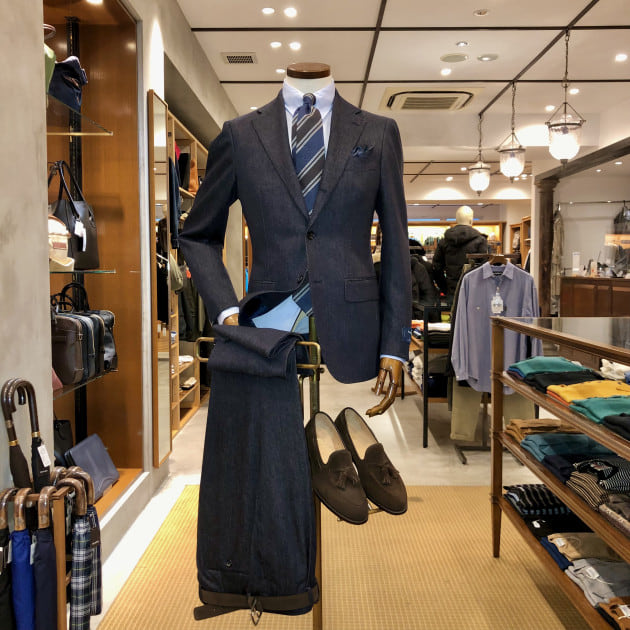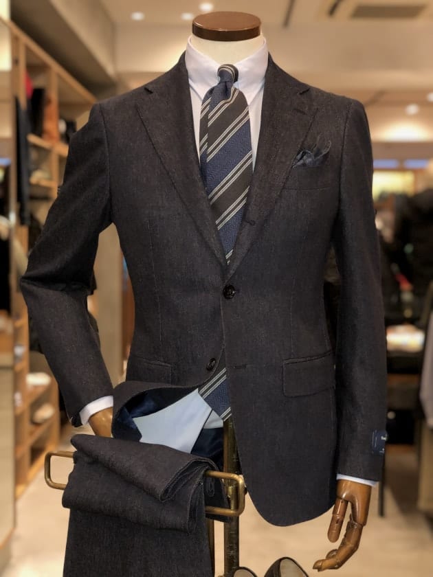 本当のデニムならばビジネスシーンのご提案はためらうところですが、ウールですのでここは堂々と。