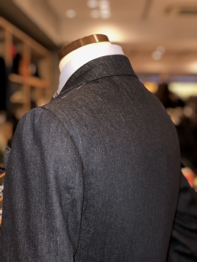 そのTROFEOと同じウール100%を使用したデニム風の生地、という事です。滑らかさや軽さは別物ですが、非常に贅沢なウールを使って、デニムという身近な生地に落とし込むこのセンス。コットンデニム特有の移染リスクも軽減されています。