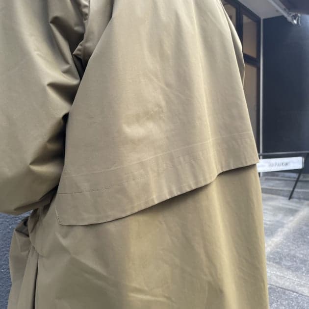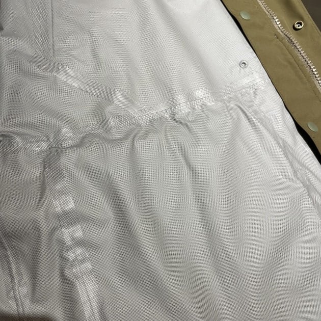 シェルには40デニールの横糸にリサイクルナイロンタスラン糸の程よい光沢の高密度な生地を使用。さらに透湿防水加工を施しており、雨の日でも蒸れにくく快適です。
