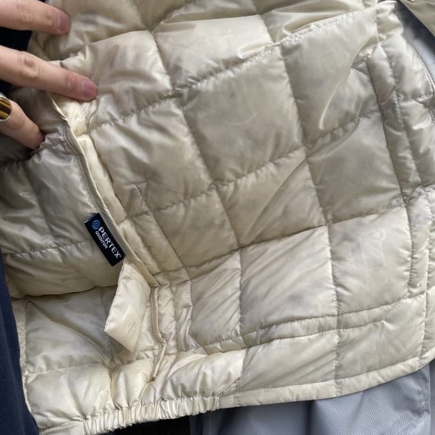 中綿はダウン80%、フェザー20%。〈PERTEX(R)〉の高密度な繊維によって毛羽抜けも起きにくいです。