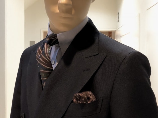 ダブルブレストが放つ重厚な雰囲気には、それ相応のネクタイが必要です。