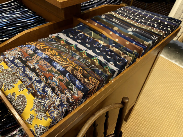 英国シルクプリントの名門、ADAMLEY(アダムレイ)社の生地です。イタリアのコモと並ぶシルクの聖地、英国マックルズフィールドに工場を構え、英国紳士の首元胸元を150年以上も支えてきた老舗シルクプリントメーカーです。
