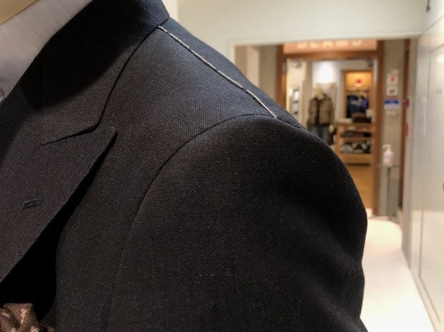 今季も希少なダブルブレストスーツ。〈BEAMS F〉のオリジナルスーツとしては、RING HAND MODEL(リング ハンド モデル)で1型、今回のSENZA INTERNO(センツァ インテルノ)で1型、合わせて2型のみの希少っぷり。