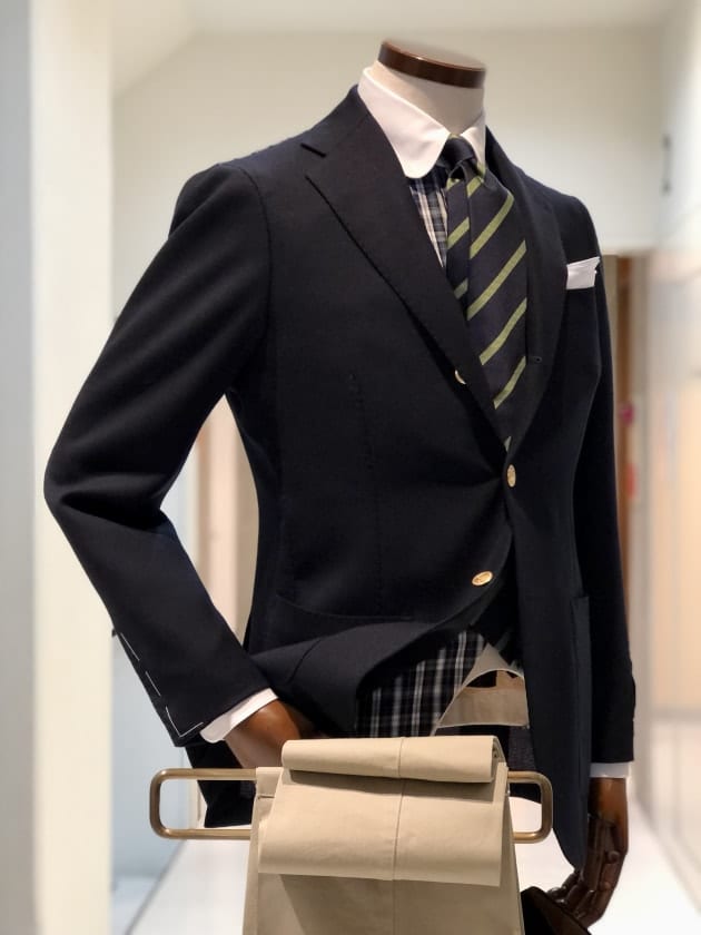 自由度の高いブレザーは、暖かくなってきてもコーディネートが楽しみなアイテムの1つ。しかし、タイドアップは涼しい内に楽しみましょう。