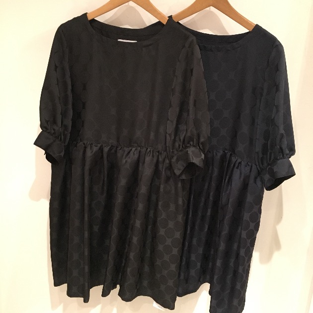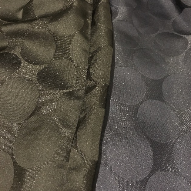 ポリエステル100%で光沢があり、大きなドットのジャガード織りが特徴のとても可愛らしいワンピースです。
