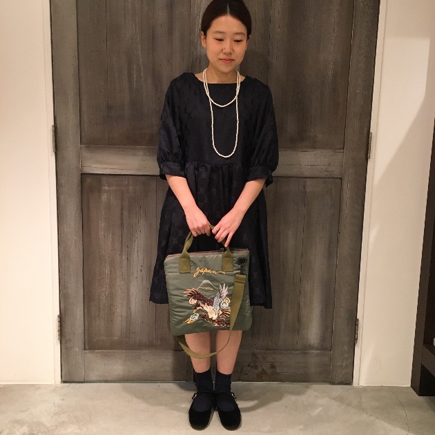 今回は普段着るイメージでコーディネートしてみましたので、バックはスカ刺繍のヘルメットバックをチョイスしてみました。