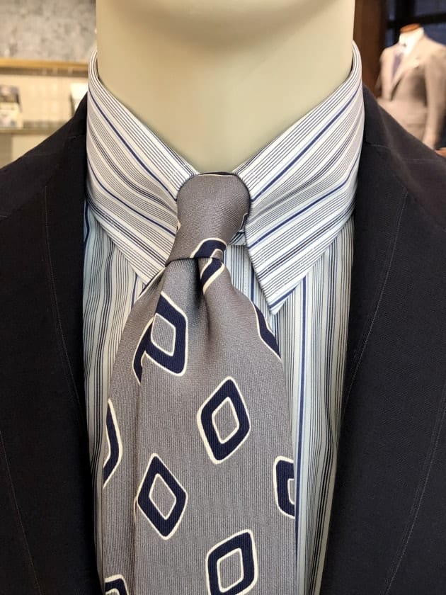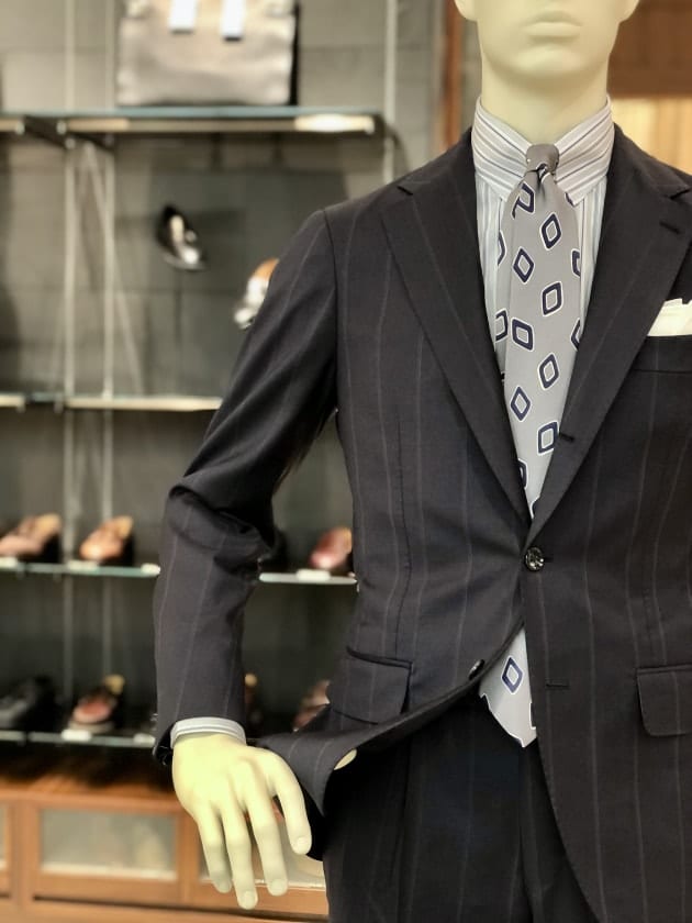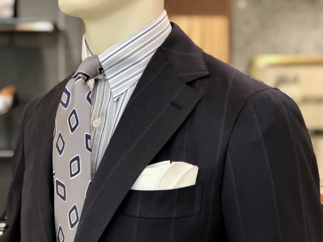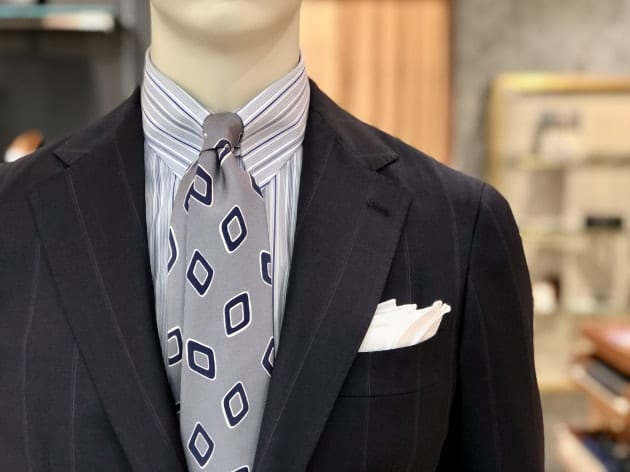 ヴィンテージ香気を放つ今回のシャツとネクタイ。高貴で高潔なスーツに相性が良く、時にそれは新鮮かつ一期一会の喜びの瞬間でもあります。