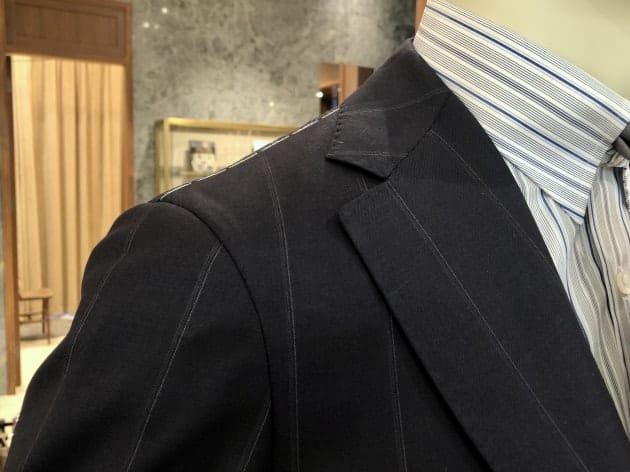 そして、柄がまた凄い。4㎝のワイドピッチストライプは、高潔を飛び越えて、もはや豪傑。
