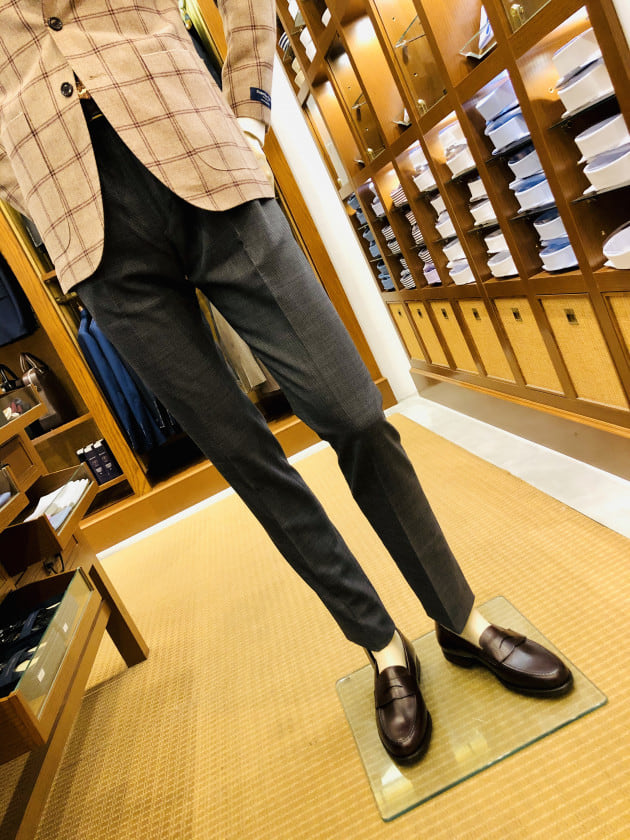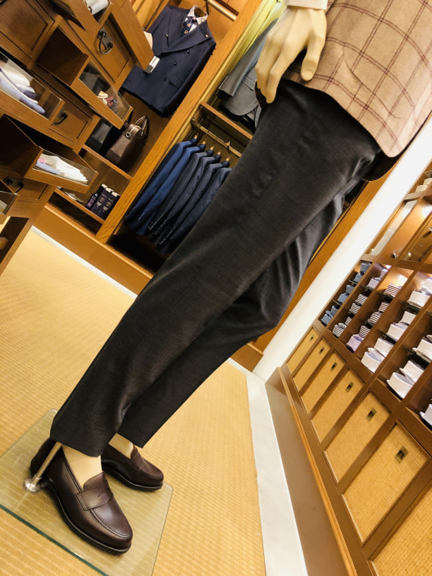 シンプルにプレーンなパンツでも良いのですが、一癖何か