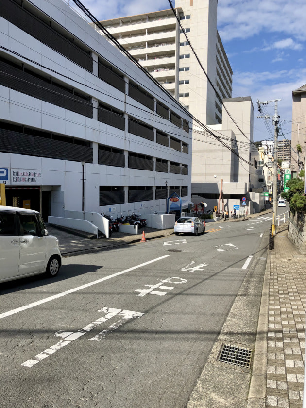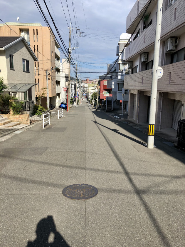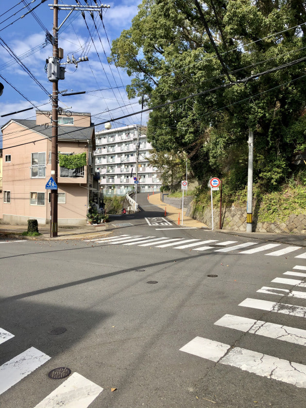 国道を進み、長崎大学の正門を過ぎたところから曲がります。余談ですが、正面の二棟のマンションは、ゴールデンボウル跡地です。ローラースケートよくやってたな…と思い出にふけって通過しました。