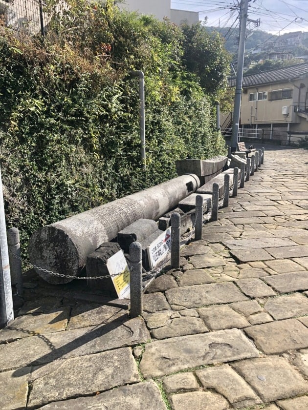 迂回しました。当時の人々が何故、現在の国道を歩く事ができなかったのか…。それは、海だったからです。長崎市の中心街は、もともと海だったのです。その証拠に市内中心を流れる浦上川は、潮の満ち引きに水位が影響する川で、現在のビッグNスタジオ辺りまで海だったとされています。断崖絶壁の岩を削り、無理矢理に道を通したところにその重要度が窺えます。ロマンです。