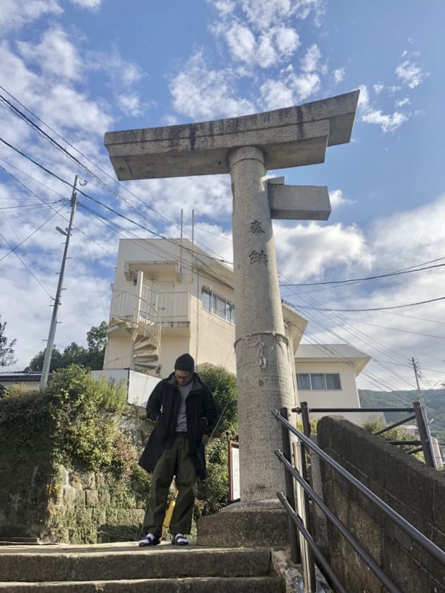 1945年8月9日11時2分、長崎に原爆が投下された日から時が止まっています。原爆の爆風により片足が吹き飛んだ山王神社の二の鳥居、通称・片足鳥居です。