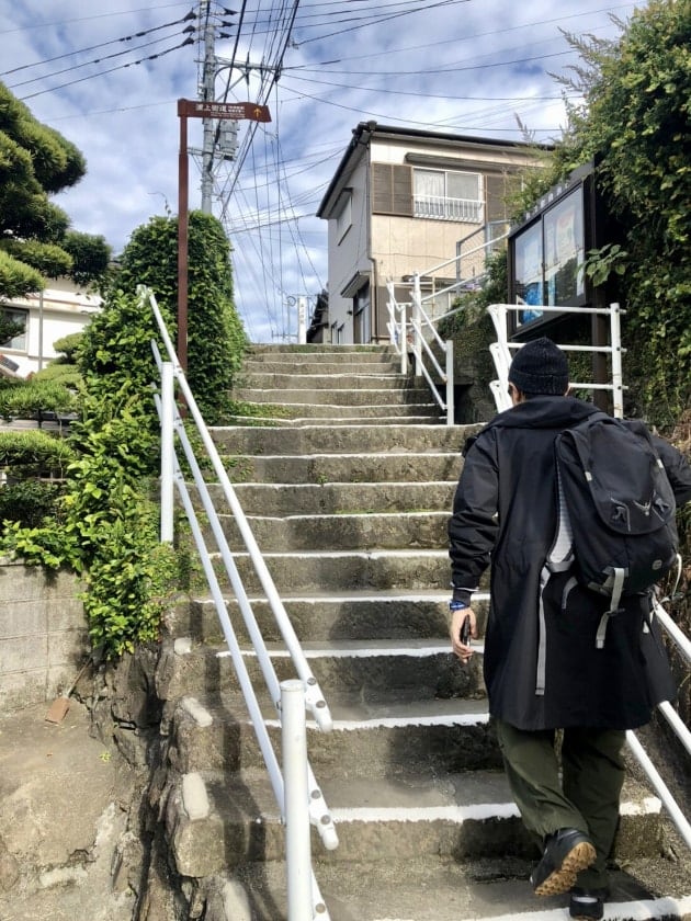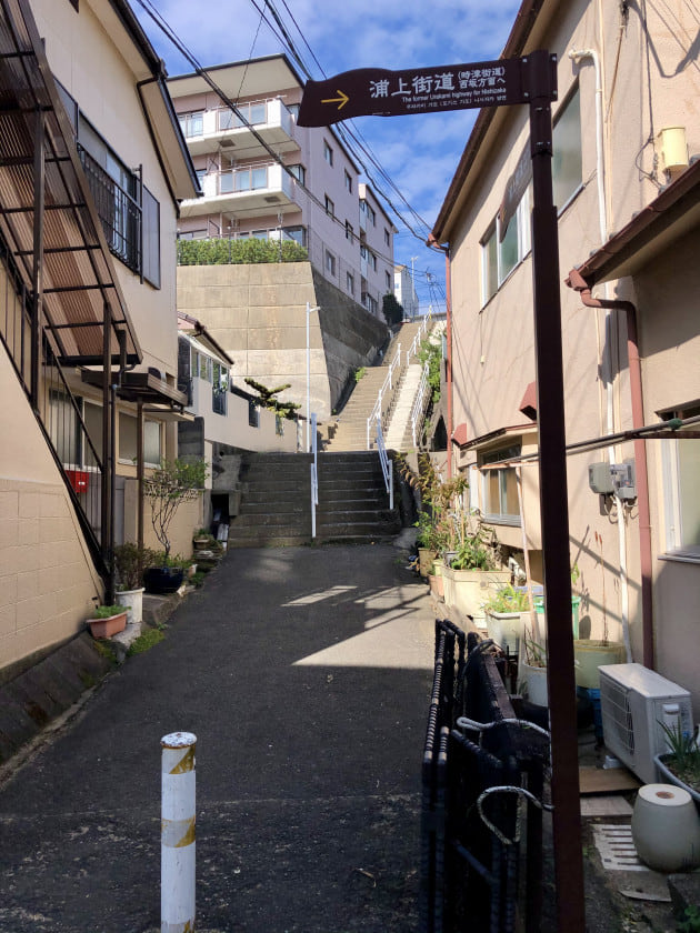 長崎大学を右手にしばらく進むと、登れ、と案内板が出てきます。昼食前の最後の登りです。