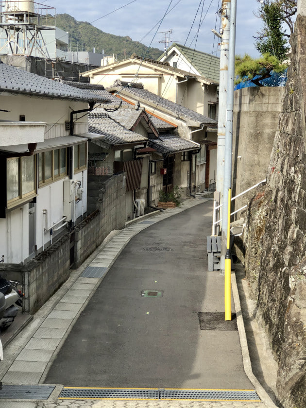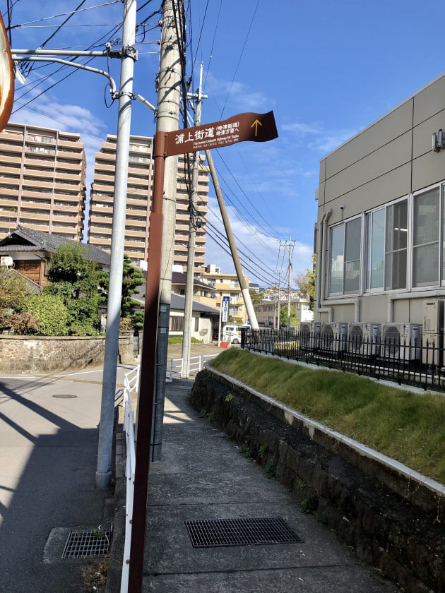階段を登った先は、閑静な住宅街で一本道です。浦上街道が隆盛を極めた頃、茶屋が何軒か立ち並び、私達同様、階段(当時は坂)を登ってきた当時の人々はこの辺りで一服、反対にこれから長崎の中心に入る人々も一服していたでしょうし、先程の浜口町から船が出ていた為、船が出るまでの時間潰しをしていたのかもしれません。現在は一本道ですが、当時は町外れの町外れ、田んぼや畑が広がり、くねくね道でした。