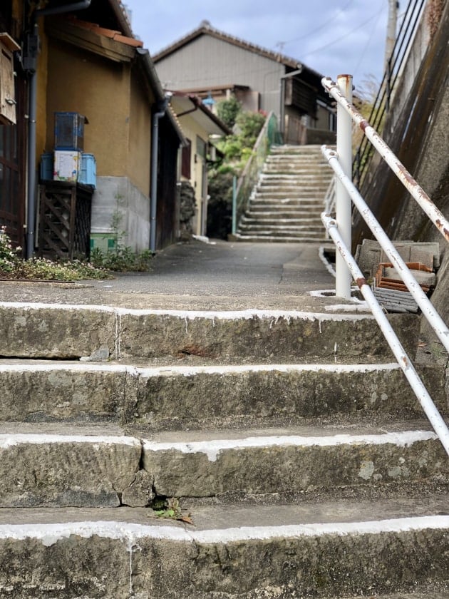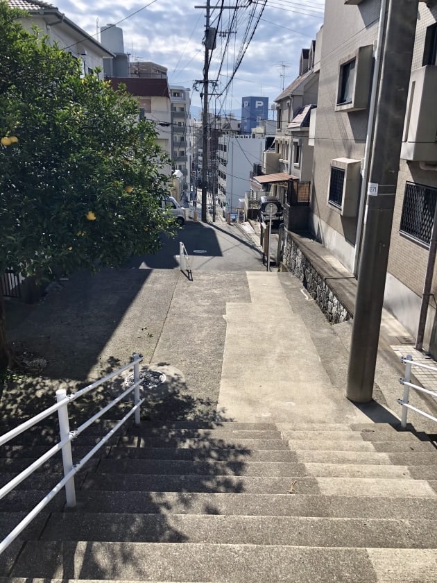 階段を登ってきました。疲れはしますが、現代では休憩するほどではありません。公道に夏みかんがなっています。
