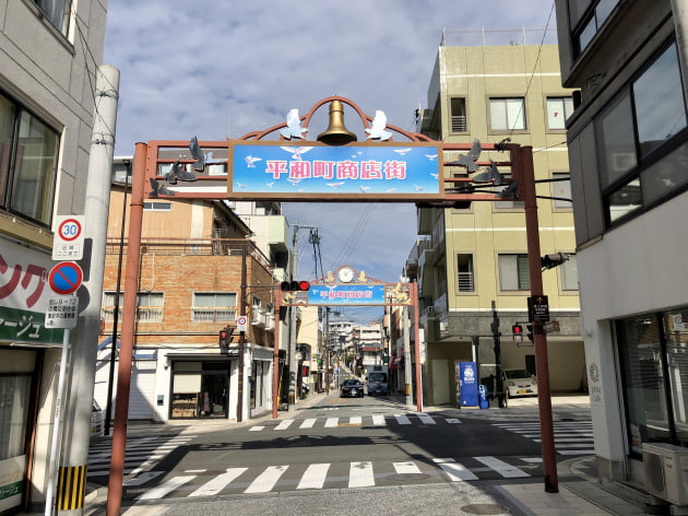 平和町商店街に出ます。
