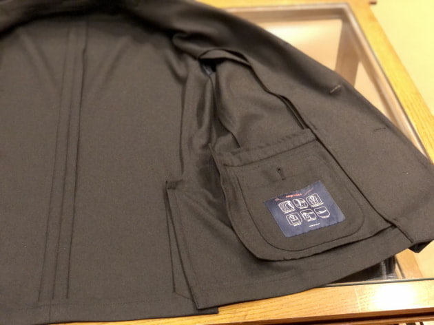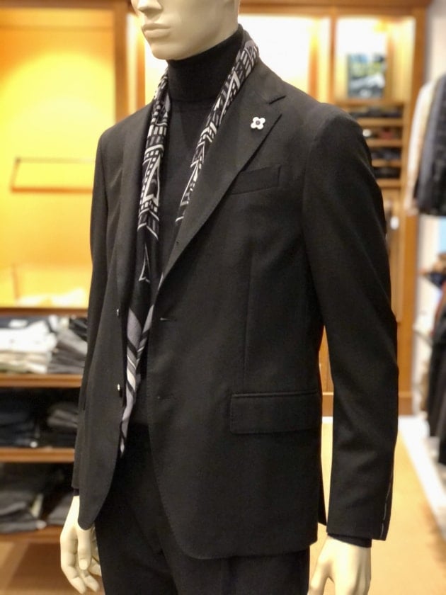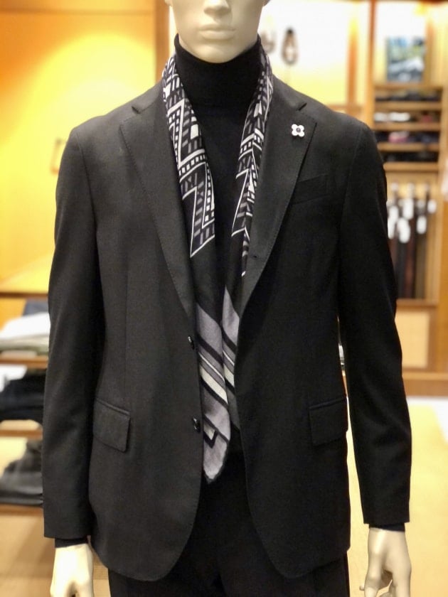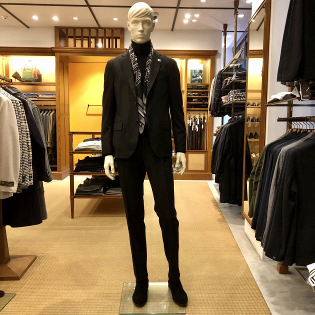 コートの中に着ていた〈LARDINI(ラルディーニ)〉のパッカブルスーツです。写真を撮り忘れましたので、是非、オンラインショッピングでその収納袋をご確認下さいませ。信じられないくらい小さくまとまります。最大の懸念はシワですが、ウール60%ポリエステル38%ポリウレタン2%の三者混紡により、絶対にシワにならないとは断言できませんが、フランネルの風合いを保ちつつ、シワの軽減を実現しています。EASY WEAR(イージーウェア)シリーズの名の通り、スーツの仕上がりはお家芸なので当たり前、加えてアクティブな方々への嬉しいストレッチ機能が更なるアクティブへと誘います。