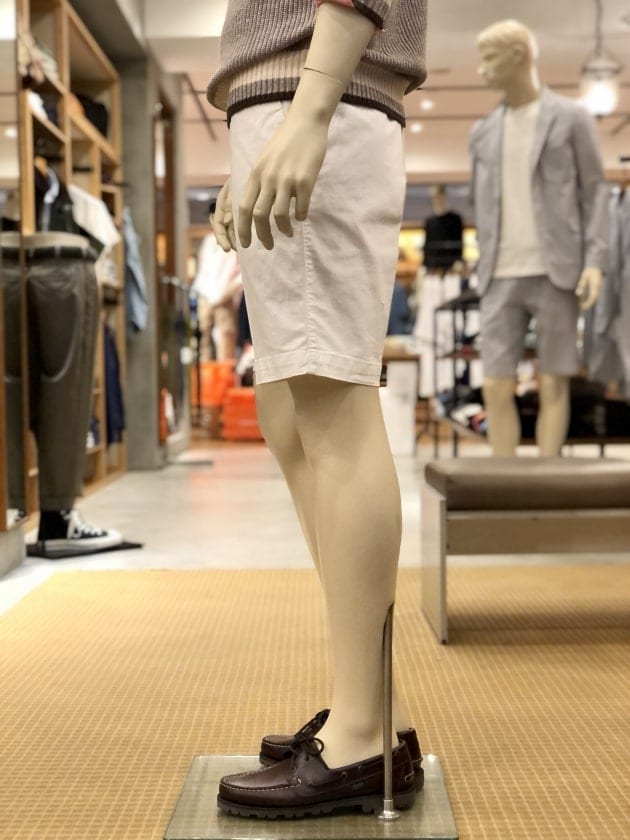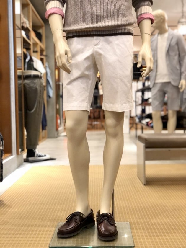 色と雰囲気のバランスを取った、としか言いようがないのですが、〈PT TORINO(ピーティー トリノ)〉の大定番ショーツモデルSLEEK(スリーク)です。“大人のショーツは膝上が基本”という、雑誌の見出しに出てきそうなタイトルを体現したのようなショーツです。パンツ屋らしい美しいシルエットと無駄のないデザインは、毎夏、多色買いや買い替えのお客様もいらっしゃるほど、安心安定安全のショーツです。