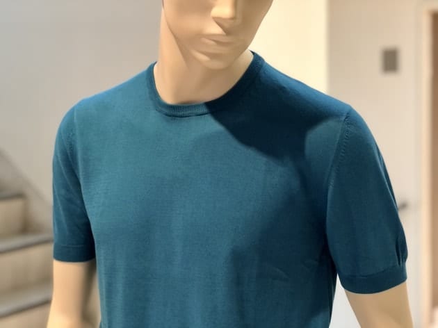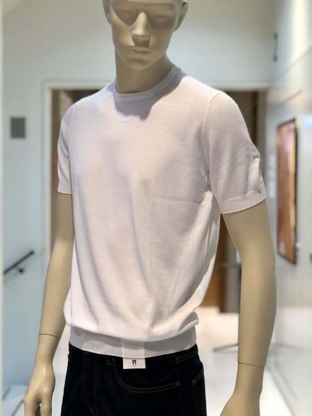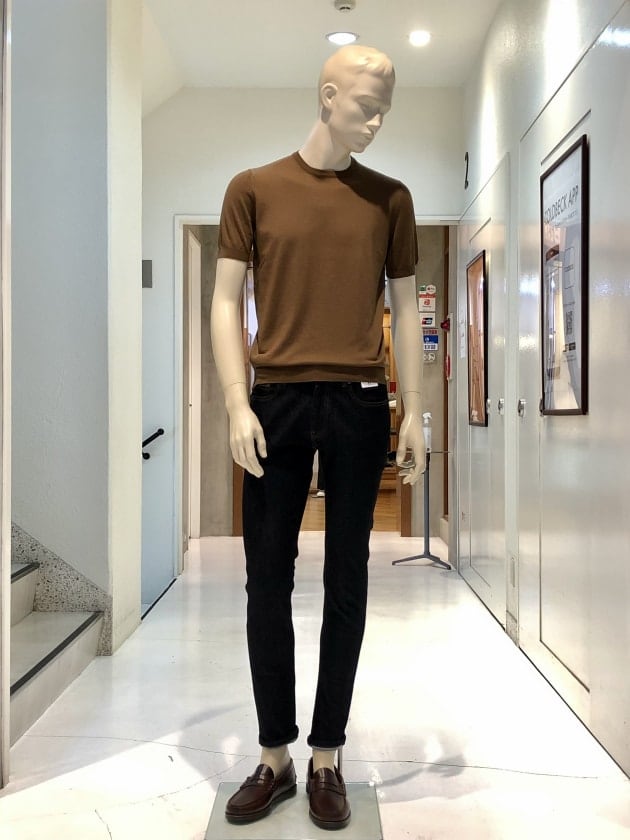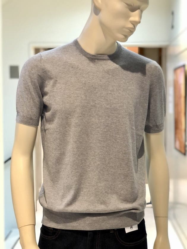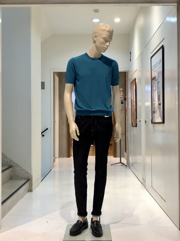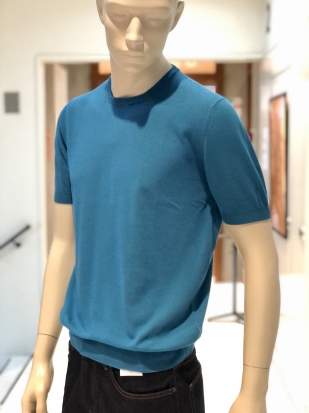 毎夏にご好評いただいているコットン100%のクルーネックニットです。今年は、スリムシルエットはそのままに、裾のリブを別注で太く修正しています。肌触りは言うまでもなく抜群で、1枚でお召しになっても、高品質故に語りかけてくる高級感は、見劣りする事なく上品なムードが漂います。今回は、定番的アイテムかつ使い勝手の良いクルーネックニットがSALEになった事を記念して、全8色の内7色をご紹介します。是非、ご覧下さいませ。
