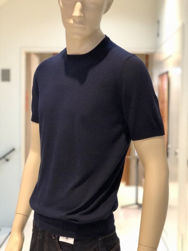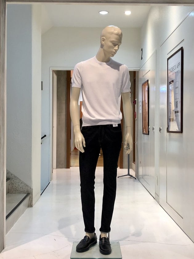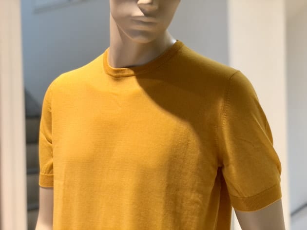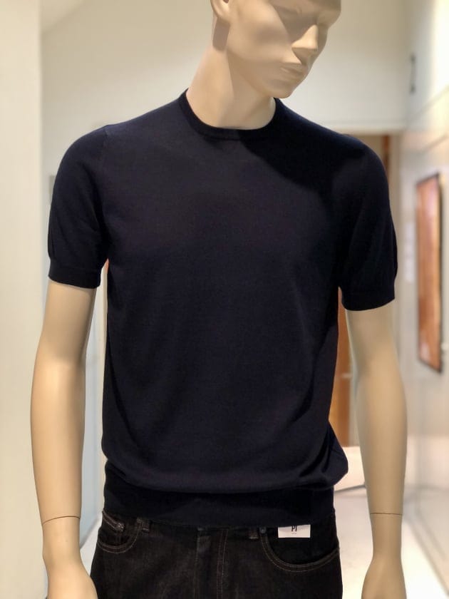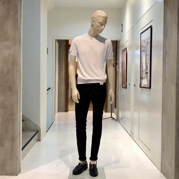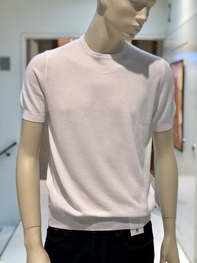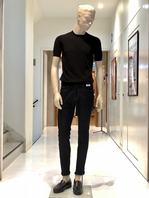 毎夏にご好評いただいているコットン100%のクルーネックニットです。今年は、スリムシルエットはそのままに、裾のリブを別注で太く修正しています。肌触りは言うまでもなく抜群で、1枚でお召しになっても、高品質故に語りかけてくる高級感は、見劣りする事なく上品なムードが漂います。今回は、定番的アイテムかつ使い勝手の良いクルーネックニットがSALEになった事を記念して、全8色の内7色をご紹介します。是非、ご覧下さいませ。