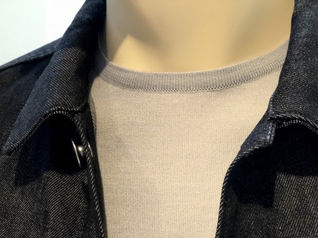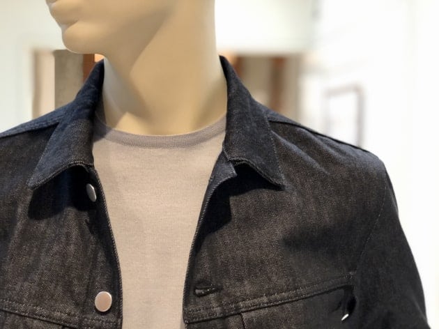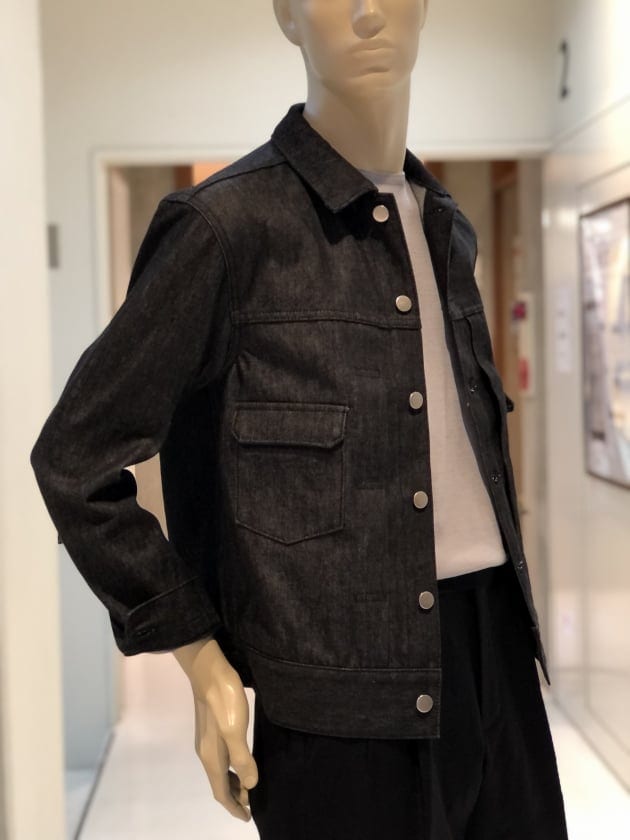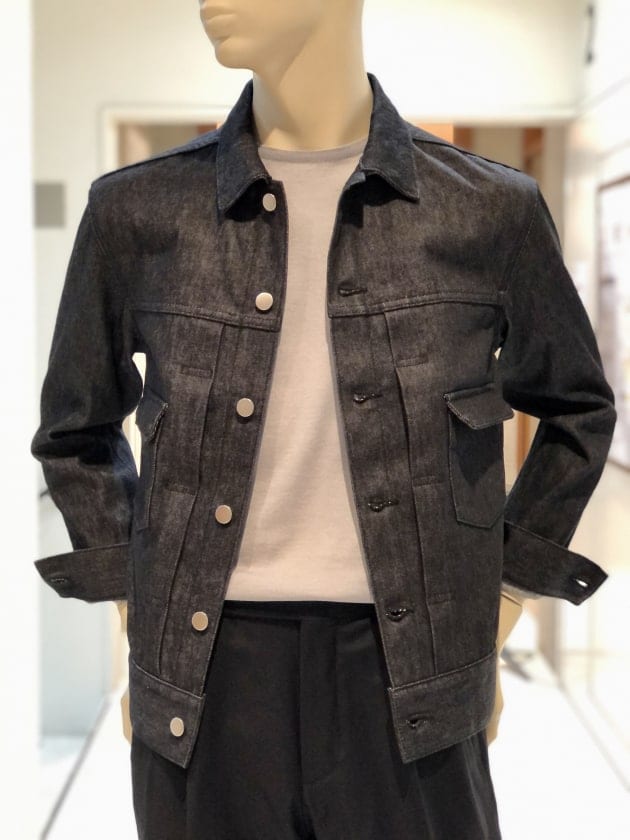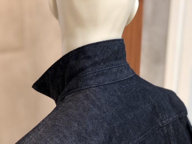 新品のデニムジャケットを着ると、割と気になるカクカクとした襟の直線的な縫い付け。馴染めばそれなりに丸みを帯びてくるのですが、なんと〈Jeanik〉のデニムジャケットは、テーラードジャケット顔負けの二枚襟の立体構造。首の付け根に襟が乗り、高さも出るので本当にテーラードジャケットを着ているかのような美しいシルエットです。