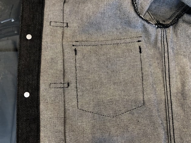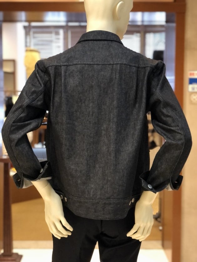 そのプリーツを留めるように施された3箇所のボックスステッチもオリジナルを踏襲していますが、「このステッチは無い方が、プリーツが開いて動きやすいんじゃない?」と思われた方、素晴らしい着眼点です。あくまでも作業着を発祥とするデニムジャケットに、細かいサイズレンジを用意する概念も余裕も当時は皆無で、スリムな人はそのまま、ふくよかな人はそのステッチを切って着る、というアメリカらしい合理的な考えが垣間見えるディテールなのです。実際、古着市場を見ると、ステッチが切れているもの、左右の高さがバラバラなものを多く見ます。つまり、屈強であるべきデニムジャケットの唯一の緩い部分なのです。諸説ありますが…。