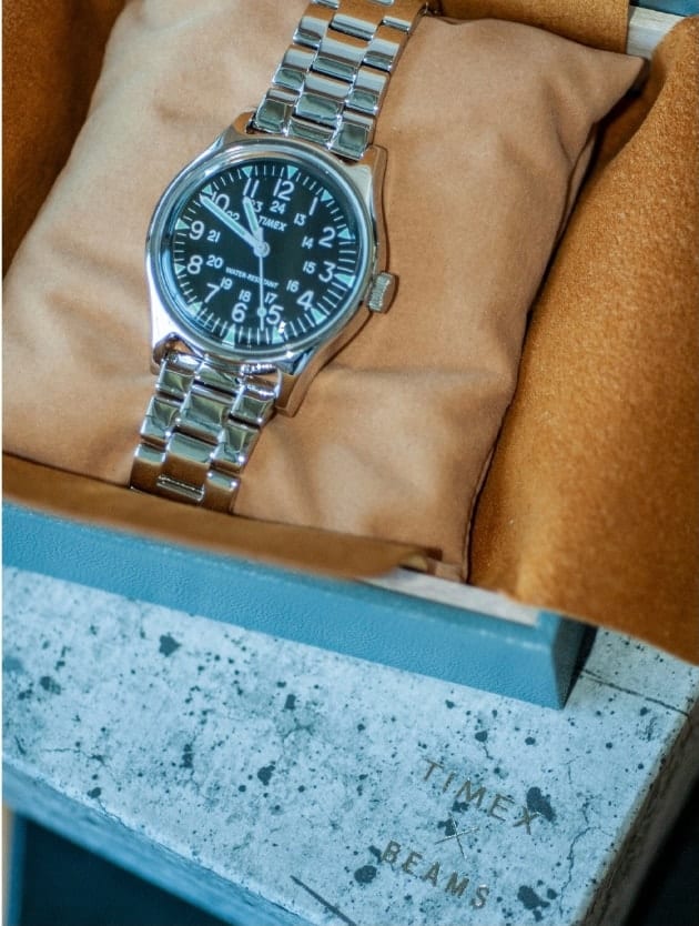 シンプルなだけにビジネスシーンでもおすすめのタイメックス×ビームス別注キャンパー。